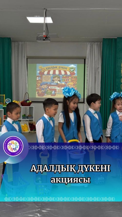 В рамках государственной программы «Честный гражданин» в дошкольных учреждениях города Астаны проводится городской этап республиканской акции «Адалдық дүкені», которая проводится с 2 по 5 февраля с целью формирования у детей ценностей честности и ответственности, а также внедрения в общественное сознание идеологии «Закон и порядок».