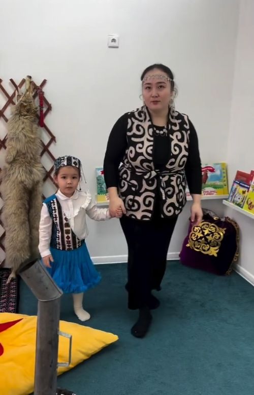 Родители группы "Болашак" выступили на домбре и исполнили казахскую песню.